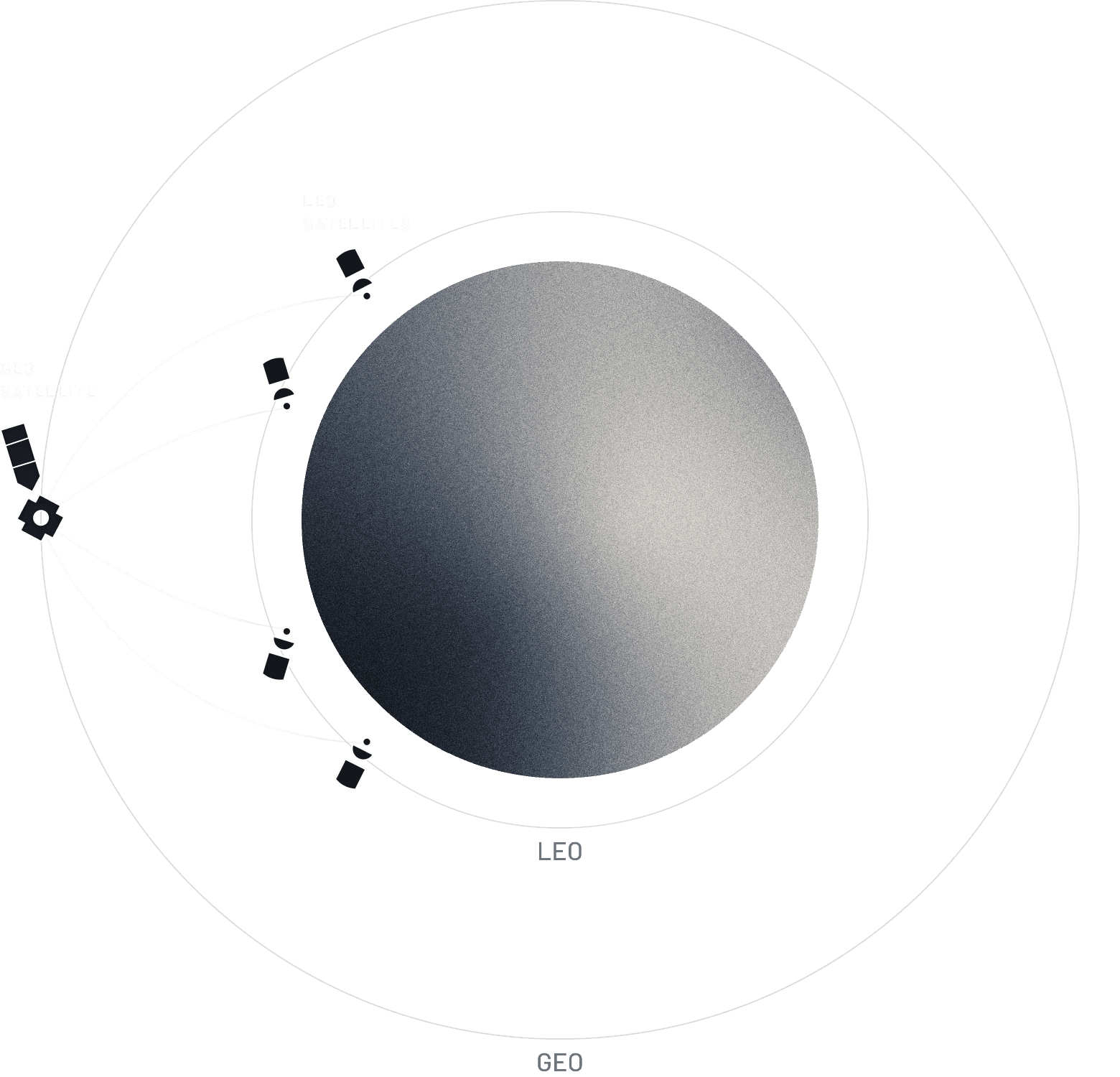 Satellites in LEO orbit the earth in less than two hours, which means that a satellite is in view of a given point on earth for only a few minutes, severely limiting the opportunity to offload data. Rather than depend on these short windows to communicate directly with ground, our OCTs connect satellites in LEO to our high-capacity, multi-user optical relay satellites in geostationary orbit (GEO).